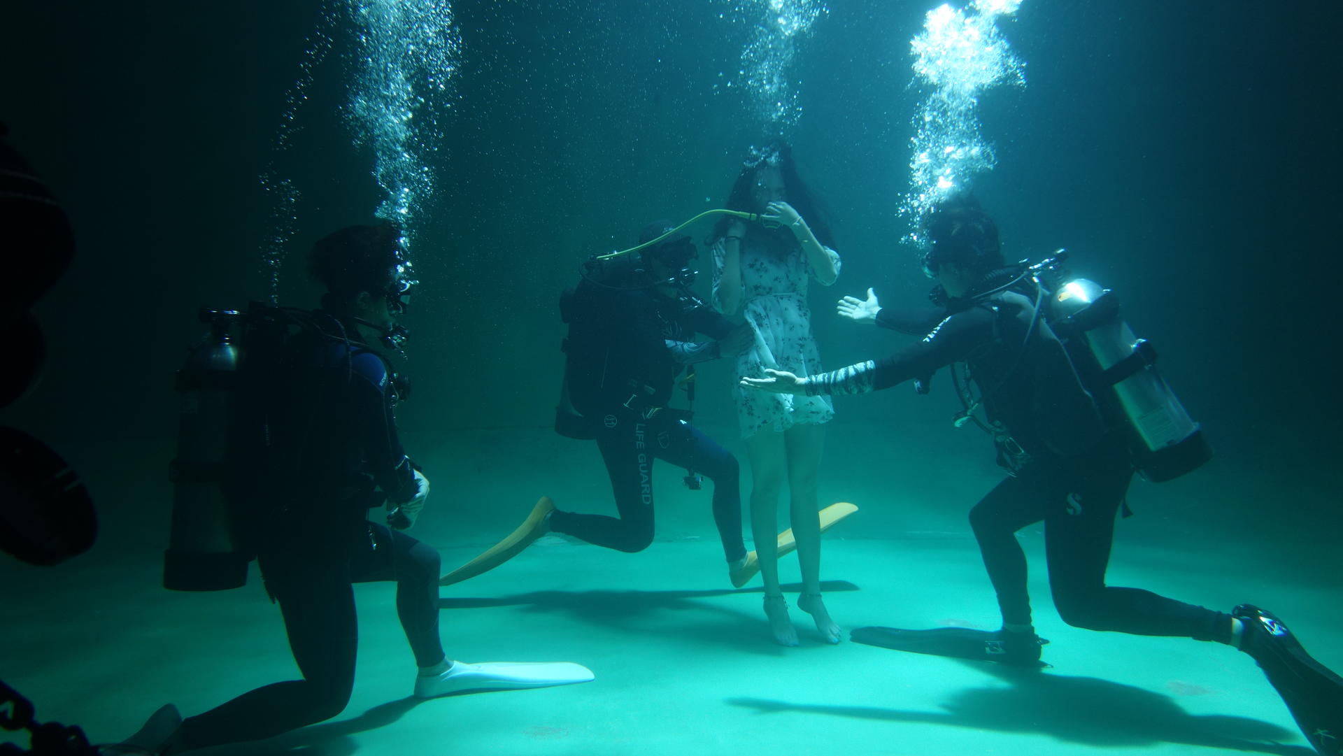 수중촬영을 하기위해 많은 스태프들의 노고가 필요하다는 사실..